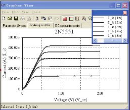 如圖2 所示是NPN 型晶體管2N5551 的特性曲線,最下方選中的曲線對應Ib=1mA,最上方的曲線對應Ib=5mA。