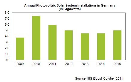 據IHS iSuppli公司的光伏市場研究,在經歷了7、8月份的低迷后,全球最大的光伏安裝市場德國有望于10月和11月迎來光伏系統訂單的增長,這是由于德國可能在明年一月份下調上網電價。上網電價的下調將刺激太陽能安裝量,投資者和業主們都在抓緊機會下訂單。