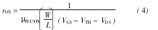 工作在線性區(qū)的MOS 管, 其導(dǎo)通電阻rON可由下式得出: