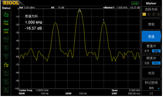 圖四:借助于100Hz RBW,清晰分辨出相鄰的2個信號