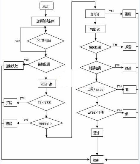 ΔVbe是晶體管的一個(gè)重要參數(shù),它與晶體管的熱阻有一個(gè)定量的線性關(guān)系,它反映了晶體管的功耗能力,對(duì)晶體管的封裝工藝及失效分析有著重要的指導(dǎo)意義,對(duì)ΔVbe測(cè)試流程如下圖2所示。