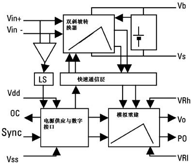 電機(jī)電流是通過(guò)使用一個(gè)外部分流晶體管來(lái)感測(cè)的,HVIC可將小的差分電壓(±250mV)通過(guò)一個(gè)精密電路轉(zhuǎn)換為時(shí)間間隔,這個(gè)精密電路的紋波去除功能有助于顯示小的群延遲。時(shí)間間隔是快速瞬變的,會(huì)被帶到輸出端。這樣就可以獲得與測(cè)量電流相對(duì)應(yīng)的模擬輸出電壓,以便與外部參考電壓相比較,最大采樣率為40kSPS。對(duì)于頻率高達(dá)20kHz的非對(duì)稱PWM調(diào)制來(lái)講,這個(gè)采樣速率富富有余。20kHz時(shí)的最大延遲小于7.5s,對(duì)于被用來(lái)IGBT保護(hù)的電流感測(cè)信號(hào)來(lái)說(shuō)也夠快了。圖4是電流感測(cè)電路。