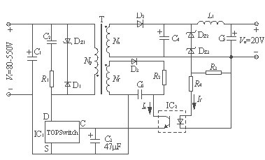 第七步確定反饋繞組的參數,反饋是反激的電壓,其電壓是取自輸出級的,所以反饋電壓是穩定的,TOP 的電源電壓是5.7到9V,繞上7匝,那么其電壓大概是6V多,這就可以了,記得,反饋電壓是反激的,其匝數比要和幅邊對應,懂什么意思嗎,至于線,因為流過其的電流很小,所以就用繞原邊的線繞就可以了,無嚴格的要求.