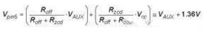 然后,施加在引腳5上的電壓就偏置。事實上,這就像是VAUX電壓與減小了1.36V的ZCD閾值比較。這樣一來,新的實際ZCD閾值就是: