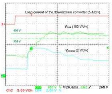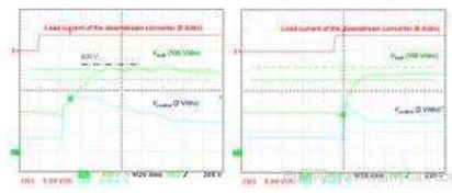 圖12 沒有Cfb時(左圖)及有Cfb時(右圖)PFC段對負載階躍變化的響應
