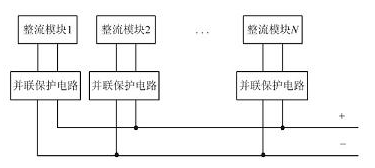 (4) 模塊并聯保護。每個模塊內部均有并聯保護電路, 可以保證模塊發生故障時自動退出系統,從而不影響其他正常模塊的工作。模塊并聯輸出示意圖如圖6所示。