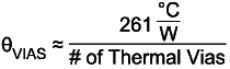 所需的PCB板面積近似值未考慮到散熱孔所發(fā)揮的作用,這些散熱孔將熱量從頂部金屬層(封裝連接至PCB)向底部金屬層傳遞。底層用作第二表面層,對流可以從這里將板上的熱量傳送出去。為了使板面積近似值有效,需使用至少8~10個散熱孔。散熱孔的熱阻近似于下列方程式值。