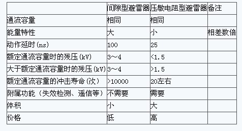 注2:該表的比較前提是相同的雷電流通流容量