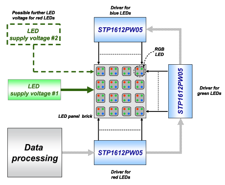 圖 3:通過STP1612PW05驅動一個全彩LED顯示屏點陣的設計簡圖