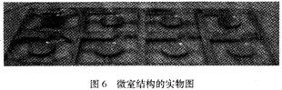 綜合以上模擬分析,從微流體在微反應室內的密度、速度及壓力的分布模擬展開討論和比較,論證了設計結構的可行性,并得到了在邊緣處設置進液口的結構較在中心處設置進液口的結構更為合理的結論。當然反應操作過程中實際效果還與進樣流速和所用試劑黏稠度的選擇等因素有關,因此通過計算設計,制作了不同的微室結構(包括進出液溝道位置、數量及尺寸的不同選擇),如圖6。下一步將結合實際檢測進一步優化結構和參數。