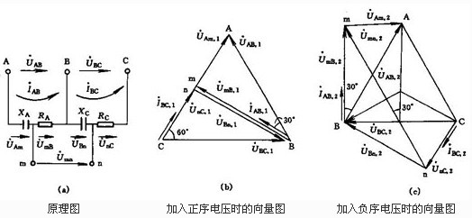 監測電壓回路接線異常,有現成的成熟技術,應用負序過濾器原理,即可達到相應目的。原理實現上也很簡單。為了讓所開發的元件既適用于400V環網供電系統的要求,又能夠正確反映PT二次計量回路的電壓接線異常情況,)所以在負序過濾器電路中除了選用各合適的參數,還增加了自適應電路。并且,由于400V環網供電中,由于負載的不對稱,常常使得電源不平衡造成負序過濾器的誤動,造成誤報警。為了躲避此現象,應增設浮動門檻,以躲過三相不平衡電壓造成的影響。在原理實現上,我們可用向量圖進行詳細分析。