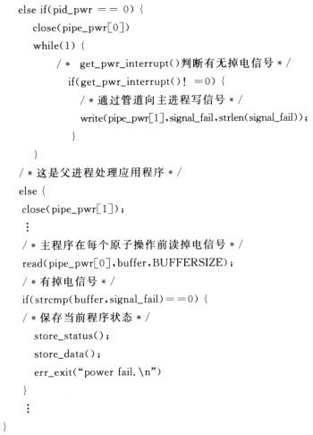 在μClinux系統下,掉電信號的捕捉有兩種方式可以進行。一種是運用系統調用,即采用void(*signal(intslg,void(*func)(int)))(int)。這個函數可以為特定的中斷信號安排制訂的執行函數,用參數func傳遞。在μCllnux中,共有31個系統中斷信號,其中掉電信號為SIGPWR。假設掉電中斷服務處理程序為void interrupt-service(int),則中斷服務與信號關聯的方式為:signal(SIGPWR,interrupt_service)。這種方式充分利用系統調用,實現簡單。在掉電保護方案設計初期也是采用這種機制。但事實證明這種機制并不可靠,其原因是Linux內核產生和管理信號的機制并不完善,有可能存在信號丟失。查閱有關Unix或L1nux的相關資料,可以發現這種狀況也普遍存在于某些其他版本的Linux和Unix中。