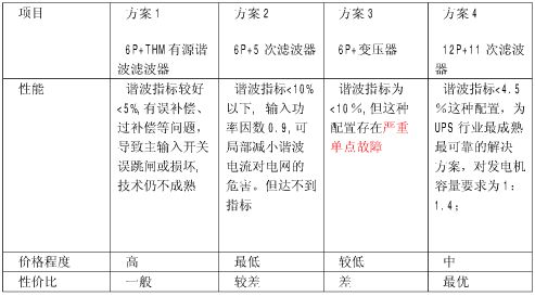 目前大型UPS輸入諧波電流抑制共有4種方案: