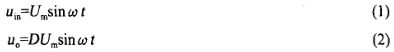 其中Um為輸入電壓幅值;w=2pf,為輸入電壓角頻率;f為輸入電壓頻率。占空比D為常數,故輸出電壓uo也是正弦變化,其相位和輸入電壓uin一致,但幅值不大于Um。