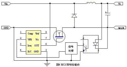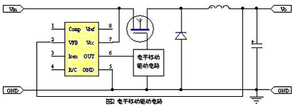 當主電路的供電電壓不太高時,可插入圖二所示的電平轉換驅動電路。這種方法的優(yōu)點是成本較低,缺點一是當輸入電壓Vin較高時不易處理好;二是電平移動驅動部分需要電荷泵供電,因此電路比較繁復。