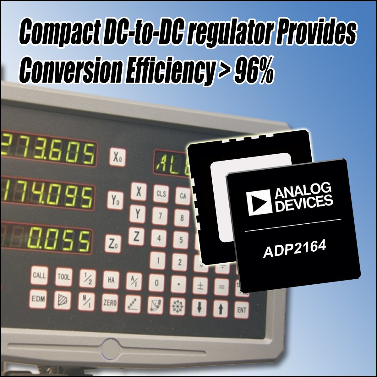 Analog Devices, Inc. (ADI),全球領(lǐng)先的高性能信號處理解決方案供應(yīng)商,最近推出一款6.5 V、4 A輸出DC-DC調(diào)節(jié)器ADP2164,其功率轉(zhuǎn)換效率大于96%。這款高集成度調(diào)節(jié)器ADP2164提供2.7 V至6.5 V輸入電源電壓范圍,輸出范圍低至0.6 V,內(nèi)置低導(dǎo)通電阻開關(guān)FET,不僅能夠?qū)崿F(xiàn)最高效率,而且減少了電路板空間。ADP2164效率極高,采用緊湊型4 mm x 4 mm QFN 16引腳封裝。這款新型DC-DC調(diào)節(jié)器針對多電源軌、終端負(fù)載應(yīng)用而設(shè)計,適合從通信基礎(chǔ)設(shè)施到工業(yè)設(shè)備的各種要求小尺寸、快速瞬態(tài)性能和高精度電壓調(diào)節(jié)的應(yīng)用。與其它5 V調(diào)節(jié)器不同,ADP2164的最大輸入范圍為6.5 V,可提供額外的安全裕量。