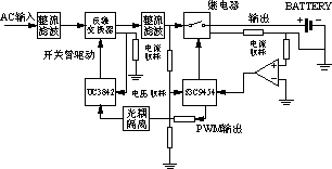 補足充電階段:當輸出電壓上升至27.5V以上,光耦回路開通,電壓環開始起作用參與輸出電壓的調整,實現恒壓功能,同時單片機PWM端口一定占空比的脈沖以調整輸出電壓,使充電電壓穩定在28.8~29.8V的范圍之內。當單片機檢測充電電流減小到一定值之后或者達到一定時間之后即轉入涓流充電階段。