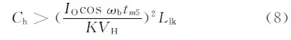 所以Ch的大小要滿足式(8),但Ch過大又增加了給Ch充電的環流,而且Ch要保證在原邊向副邊傳送能量結束之前充電結束。所以Ch應該在保證零電流開關情況下盡可能小。