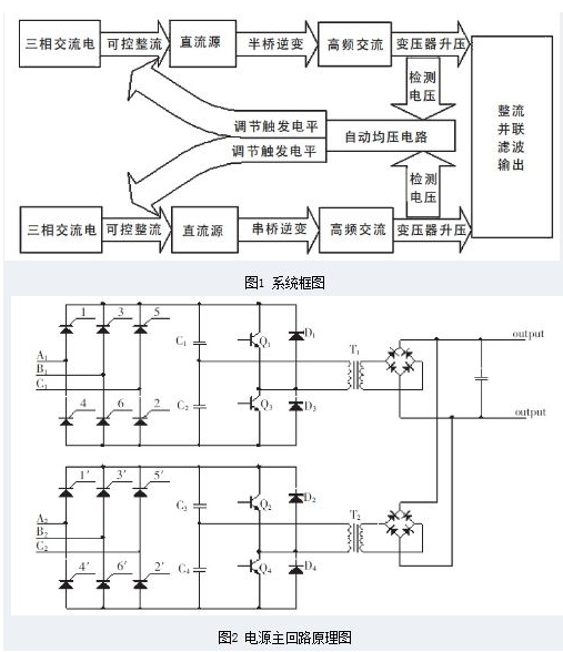 電源的系統框圖及主回路原理圖別如圖1 和圖2 所示。