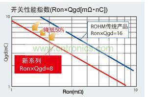 進(jìn)一步微細(xì)化,同時,采用羅姆獨(dú)家的低容量構(gòu)造和新的“溝槽式場板結(jié)構(gòu)”,實(shí)現(xiàn)了低容量與低導(dǎo)通電阻兼?zhèn)涞脑Ec羅姆傳統(tǒng)產(chǎn)品相比,表示功率MOSFET的性能指數(shù)的“FOM”數(shù)值可降低50%。