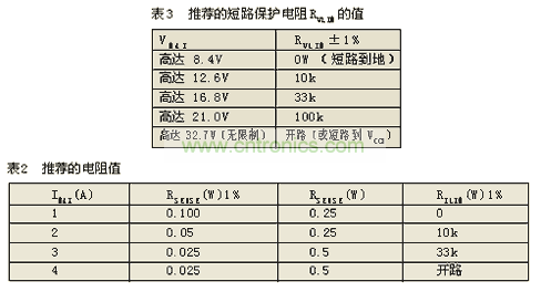VLIM引腳到GND之間連接的外部電阻值可以決定5個充電器輸出限壓值中的任一個(見表3)。這種用硬件實現(xiàn)限壓值的方法是一種比較安全的措施,它是不能被軟件方式所取代的。