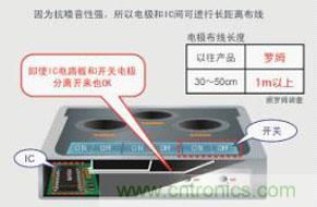 由于其卓越的抗噪音性能,可支持長達1m的長距離布線,是普通產品的約2倍。在大型家電等較難安裝觸控開關的設備中,也可使用觸控開關而無需顧慮布線問題。