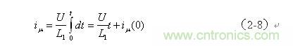 為流過變壓器初級線圈的勵磁電流,U為加到變壓器初級線圈兩端的電壓,L1為變壓器初級線圈的電感量,t為時間,