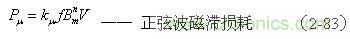 當(dāng)加到變壓器初級(jí)線圈兩端的電壓為正弦波時(shí),變壓器鐵芯的磁滯損耗和渦流損耗可分別用下面的(2-83)和(2-84)經(jīng)驗(yàn)公式進(jìn)行估算: