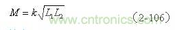 【說明】互感M有正負,圖2-41-a和圖2-41-c的接法互感M為正,圖2-41-b和圖2-41-d的接法互感M為負。兩個線圈之間的互感M為: