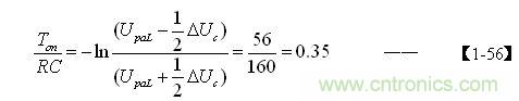 當RC的值與開關管導通時間Ton完全相等時,【1-46】式的值正好等于0.37,與【1-56】式的結果非常接近。或者當紋波電壓