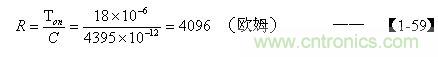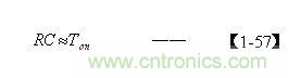 把由【1-52】和(2-73)式求出電容器C的結果,以及根據【1-25】式求出的Ton值,代入【1-57】式后即可求出電阻R的值。