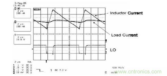 下圖說明了電感減小時,在輸出電壓的變化范圍內,負載電流的波動明顯增大。