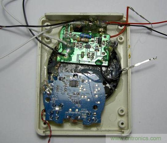 方案二是將點金石后蓋里的線路板、線圈和四塊鋼片取出來,在移動電源下蓋里面挖出相應的凹槽,將線圈、線路板和鐵片嵌入到下蓋里。優點是美觀,缺點是制作難。