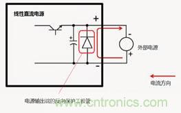 對于線性電源,必須在電源的輸出端,按照上圖的方式添加反向保護二極管,即二極管的陰極連接到電源的正極,陽極連接到電源的負極。