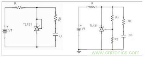 說(shuō)到TL431 的工作方式,很多人想到的必然是TL431+PC817 的電源電路。其實(shí)任何基于431 手冊(cè)中的穩(wěn)壓電路,都可以有合理的電路模型。