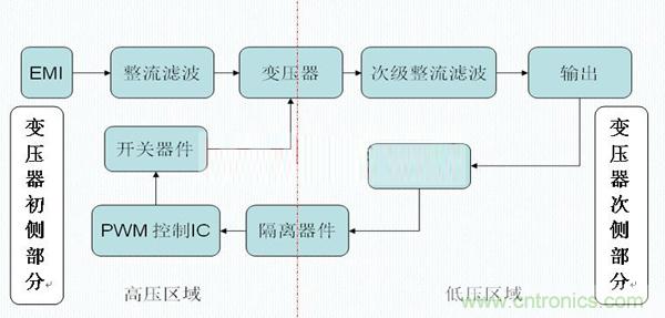 一般來說,總的來分按變壓器初測部分和次側部分來說明。開關電源的電路包括以下幾個主要組成部分,如圖1