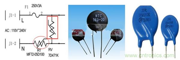 圖4中的RT為NTC,電阻值隨溫度升高而降低,抑制開機時產(chǎn)生的浪涌電壓形成的浪涌電流。