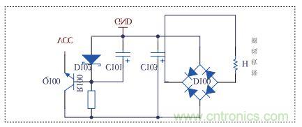 如圖3,當感應線圈靠近發(fā)射線圈時,就會產生感應電流,經過全波整流后,根據不同的電子產品的充電電壓,可選擇不同的穩(wěn)壓二極管穩(wěn)壓,再經三極管Q100放大電流后供給不同電子產品充電。