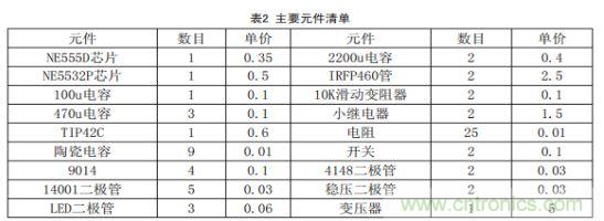 表2:本系統(tǒng)所采用的主要元件清單
