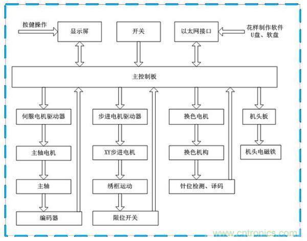 圖1:繡花機(jī)控制系統(tǒng)結(jié)構(gòu)框圖