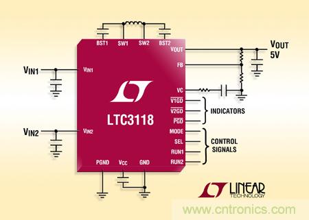 【導讀】昨日,凌力爾特公司宣布推出雙輸入、寬電壓范圍同步降壓的升壓型 DC/DC 轉換器 LTC3118,該轉換器具雙輸入電源通路控制的 18V、2A 同步降壓-升壓型DC/DC 轉換器允許多個輸入和延長的運行時間。LTC3118集成低噪聲、低損耗以及高效率等優點。
