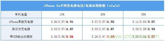 筆者使用了5款不同品牌原配的充電器+2款帶USB輸出的插板進行測試(手機50%電量),發(fā)現(xiàn)輸出電壓基本略微大于5v(某些線補較高的能去到5.3v,而沒有線補的低于5v),而電流也在1a左右。所以使用某些非原裝充電頭對iPhone進行充電,確實會比原裝充電頭更快。當(dāng)然,山寨/品質(zhì)低劣的充電器就另說了。