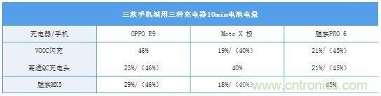 測試手機:OPPO R9、Moto X 極、魅族PRO 6,充電頭:VOOC閃充頭、高通官方QC充電頭、魅族MX5充電頭(UP1220)。其中(OPPO R9應(yīng)搭配VOOC閃充頭使用:VOOC閃充協(xié)議);(Moto X 極應(yīng)搭配高通官方QC充電頭使用:QC2.0快充協(xié)議);(魅族PRO 6應(yīng)搭配MX5充電頭使用:聯(lián)發(fā)科PEP快充協(xié)議)。