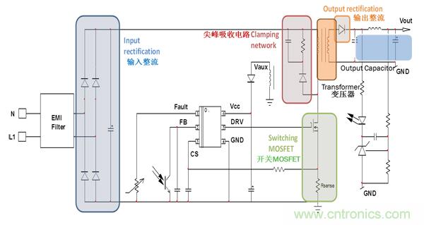 圖2. 準(zhǔn)諧振反激電源的損耗分布