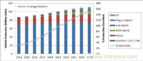 研究公司Strategy Analytics的研究表明,各類電動(dòng)汽車的產(chǎn)量在汽車總產(chǎn)量中所占的份額預(yù)計(jì)將從 2016 年的 5% 提高到 2023 年的 15%。