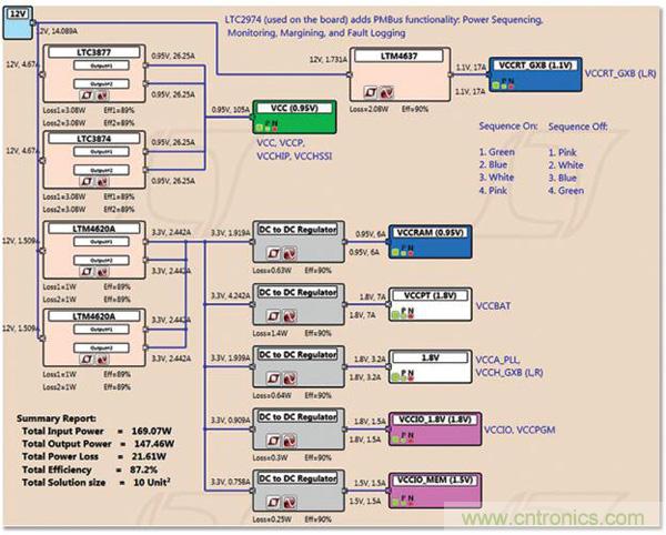 從開發套件中給出的建議著手;然后容易地重新組織電源構件、改變電源額定值、計算效率和功耗、仿真每個電源構件、選擇 DC/DC 穩壓器器件型號并驗證定制解決方案。