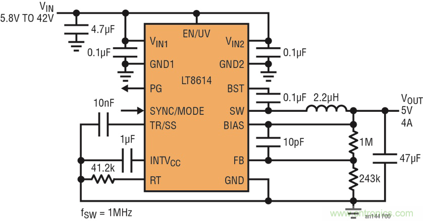 · 高電流密度:采用 3mm x 5mm MSOP 封裝,提供高達(dá) 5A 連續(xù)輸出電流