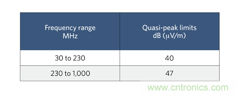 圖 1:CISPR 22 標準 B 類傳導 EMI 規范。