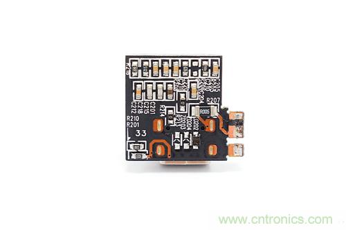 二次側低壓輸出濾波為兩枚固態電容,Type-C輸出母座安裝在一塊獨立PCB小板上。