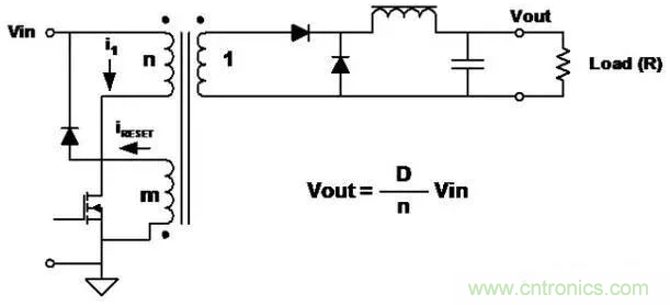 ■在每個開關周期中必須對變壓器磁芯去磁。常用的做法是增加一個與初級繞組匝數相同的繞組。